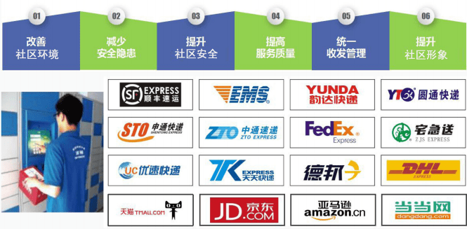 投放快遞柜(1000個(gè)以上快遞格口投放,7*24小時(shí)服務(wù));快遞服務(wù)中心(專(zhuān)業(yè)人員+標準運營(yíng)流程)、全方位貼心服務(wù)。
