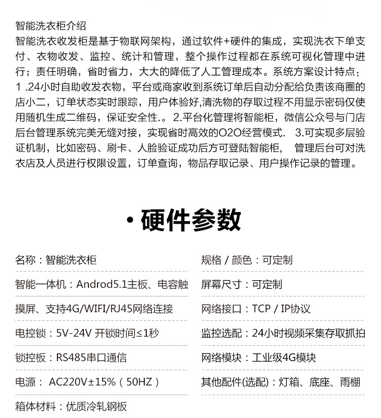 智能洗衣柜可投放于小區、校園、醫院、公寓等人流量大且密集的區域。智能柜搭載移動(dòng)互聯(lián)網(wǎng)、物聯(lián)網(wǎng)等相關(guān)技術(shù),結合洗衣軟件,搭建起洗衣智能化自助平臺。是洗衣行業(yè)的人工智能與互聯(lián)網(wǎng)+生活服務(wù)融合下的洗滌新模式。