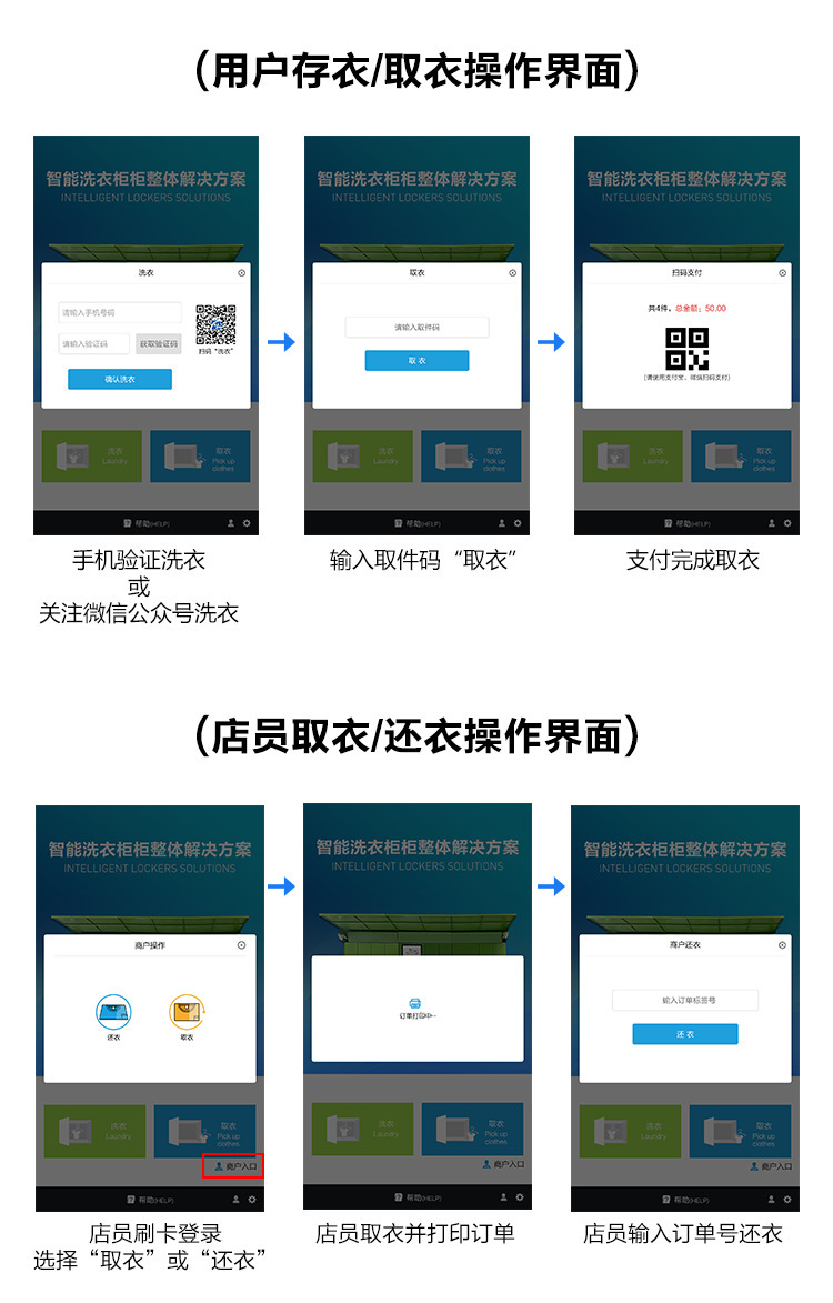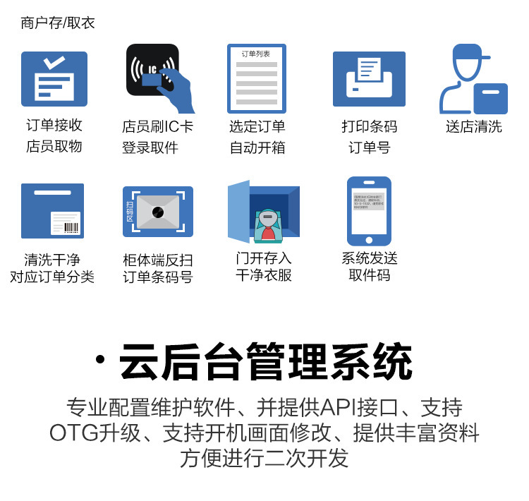 當今大數據,人工智能,物聯(lián)網(wǎng)等技術(shù)手段的革新,自助經(jīng)濟服務(wù),給人們帶來(lái)方便和全新的購物體驗。把生活與智能化緊密結合,提升生活幸福感。智能洗衣柜是顧客與洗衣店之間的物流智能柜,洗衣店為需要洗衣、洗鞋、干洗等用戶(hù)提供全天24小時(shí)自助服務(wù)。